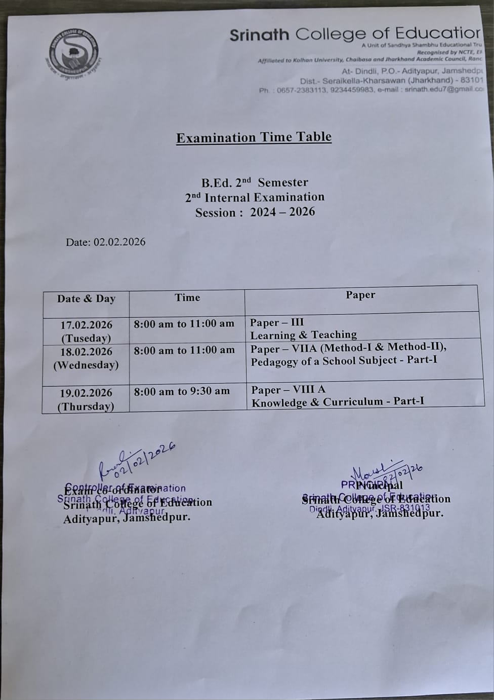 B.Ed. 2nd Semester 2nd Internal Examination Session 2024-2026